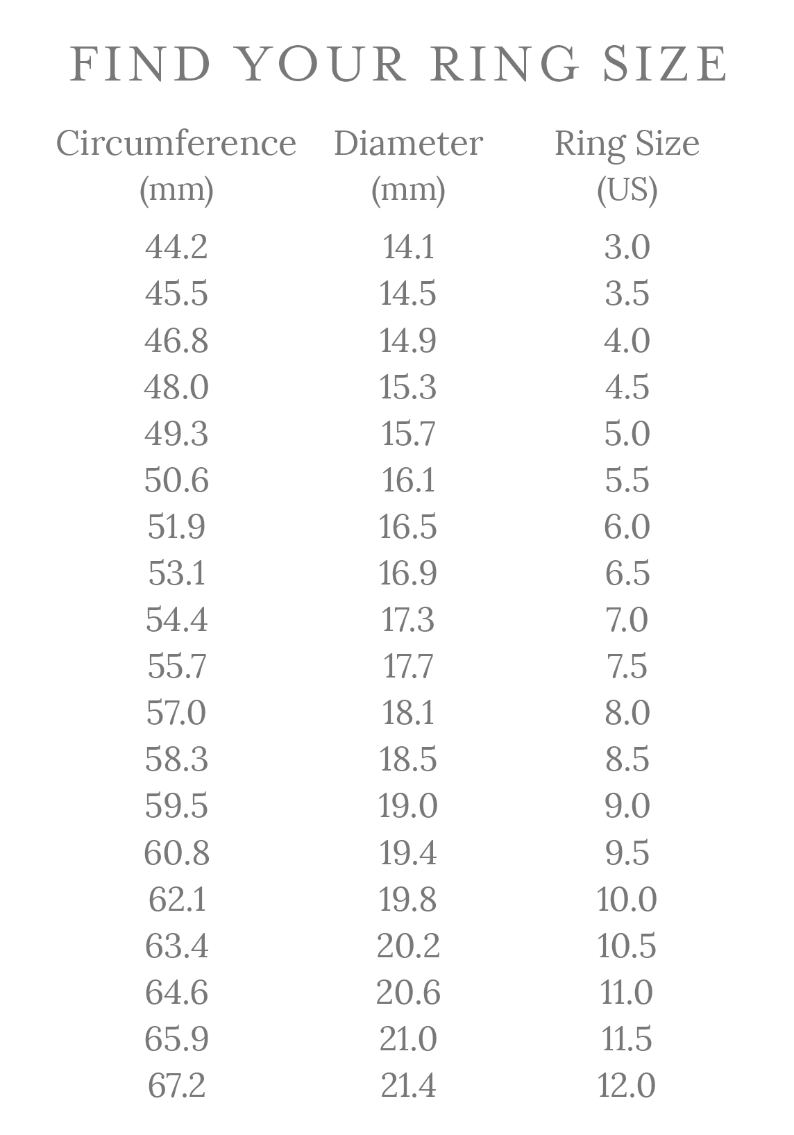 Pick the closest (circumference) measurement on the ring size chart to find your ring size!
