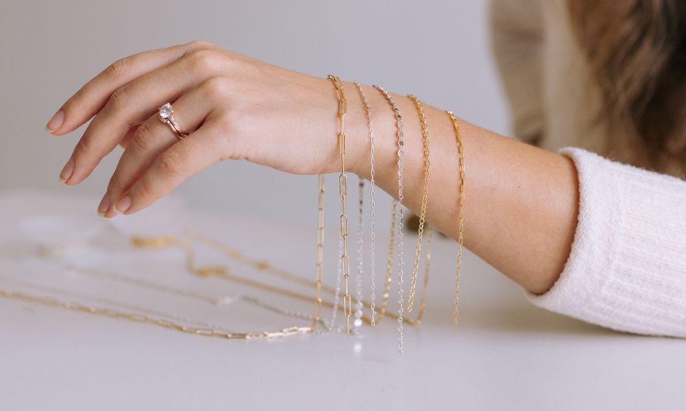 We use sterling silver and 14 karat gold-filled chain because they both will last 20+ years