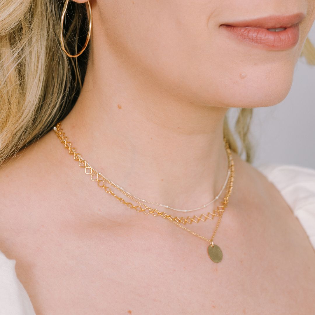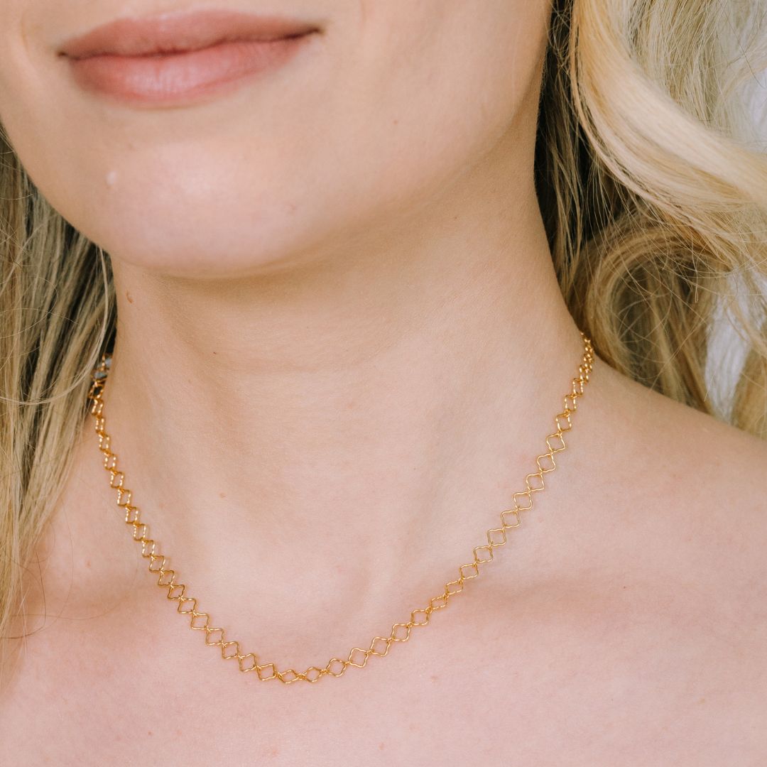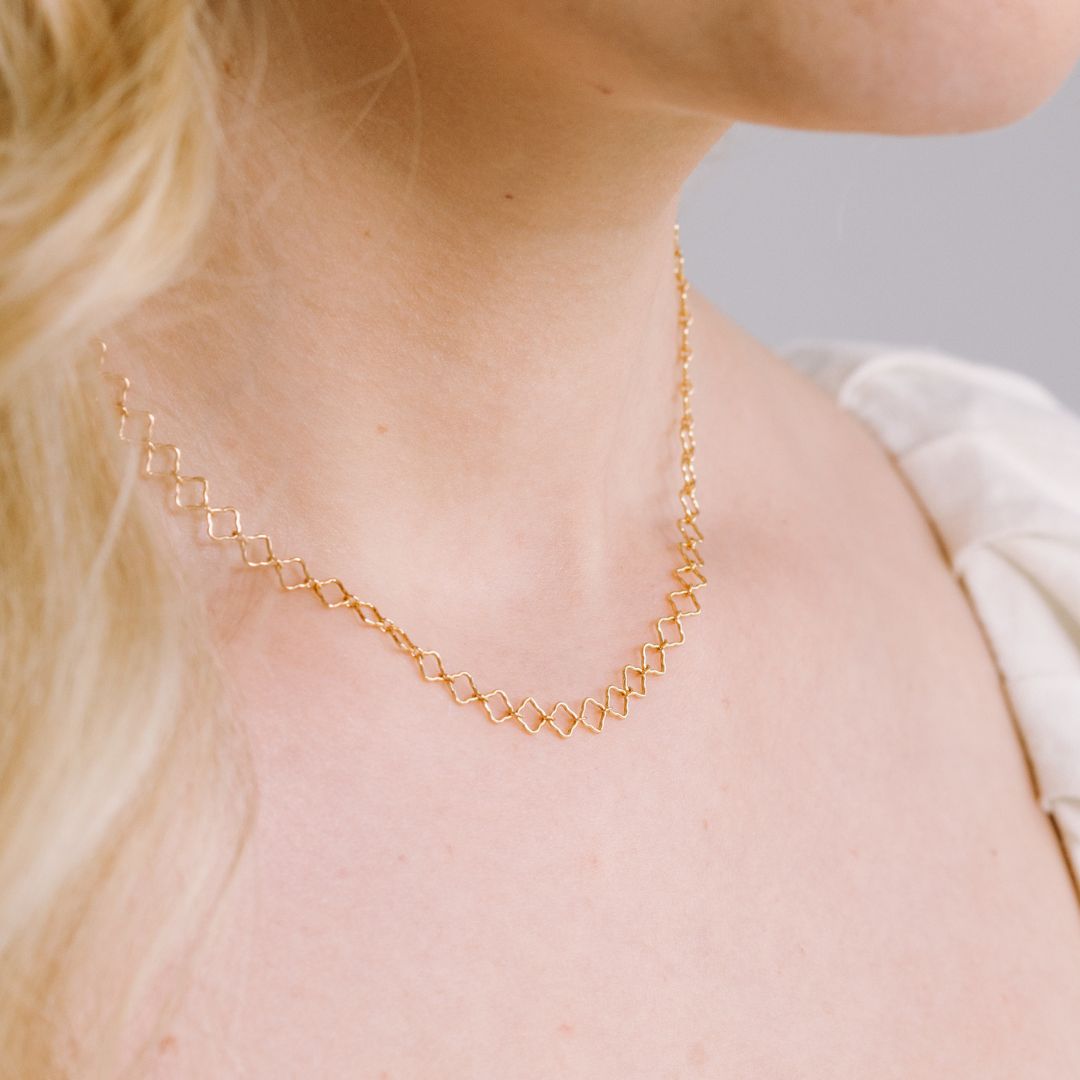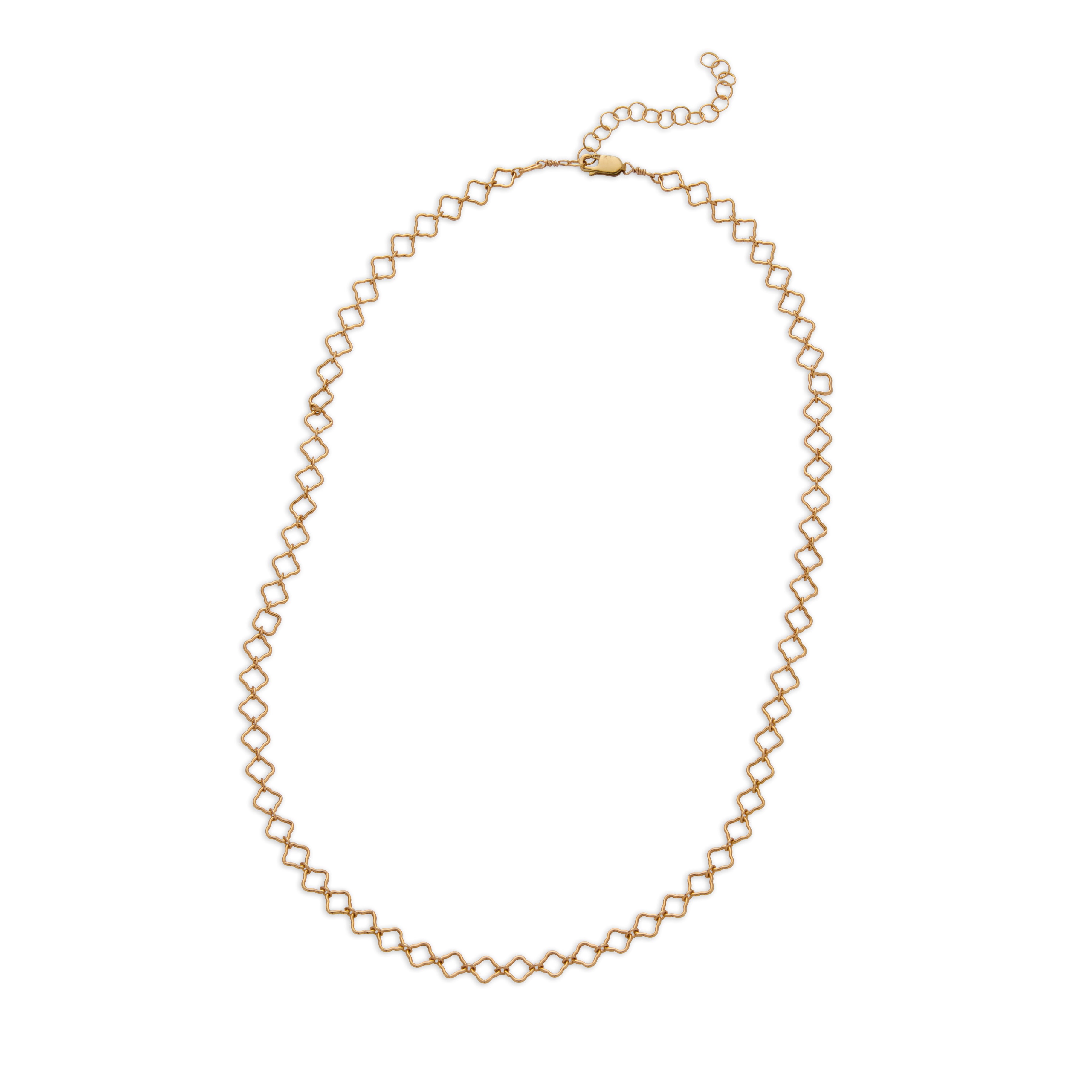 This 14k gold-filled chain features clover-shaped links that catch the light and command attention. Wear it long or clip it short. The open link design lets you clasp it anywhere, turning it into a choker whenever the mood strikes.