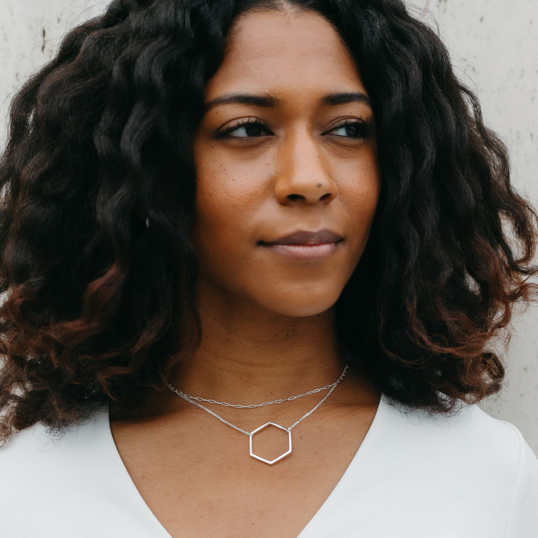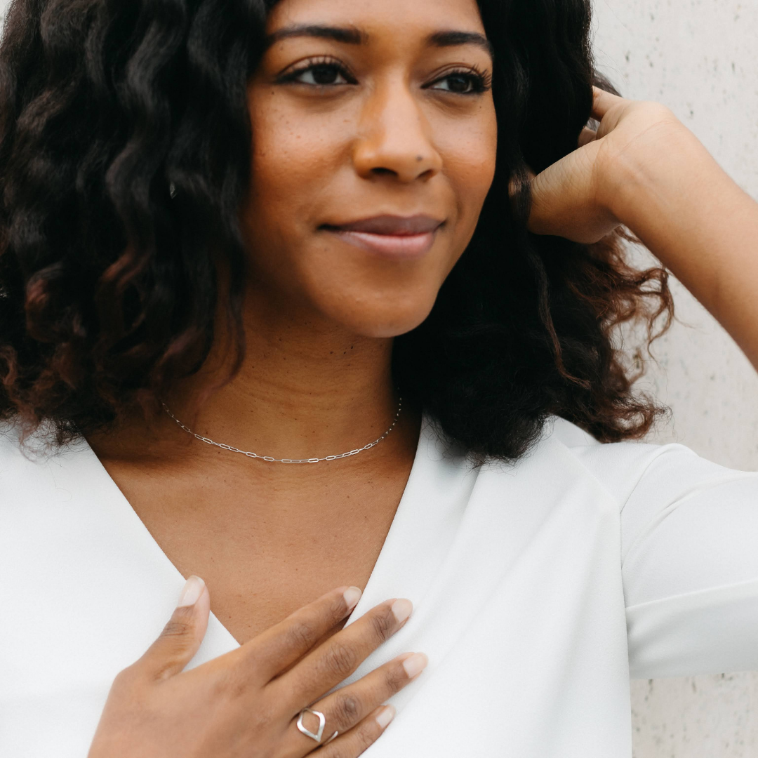 I met Carly a few years ago at a mutual friend's baby shower. Carly is beautiful, in great shape and a beam of light. If I were having a more insecure day, I would have projected all sorts of nonsense on her. But, thankfully, I was in a good space. ;) Just being honest. Since that day, we have laughed a lot together, gotten very creative and listened to one another share intimate and vulnerable feelings and experiences. She's a reminder to me, that life is an ongoing balance. And, to be gentle and loving to ourselves through it all. Easier said than done. I know. Carly is warm and classic. You can take her anywhere, and she'll fit in. This is why I named this paperclip chain necklace after her. Delicate, strong, versatile and plays/layers well with others.