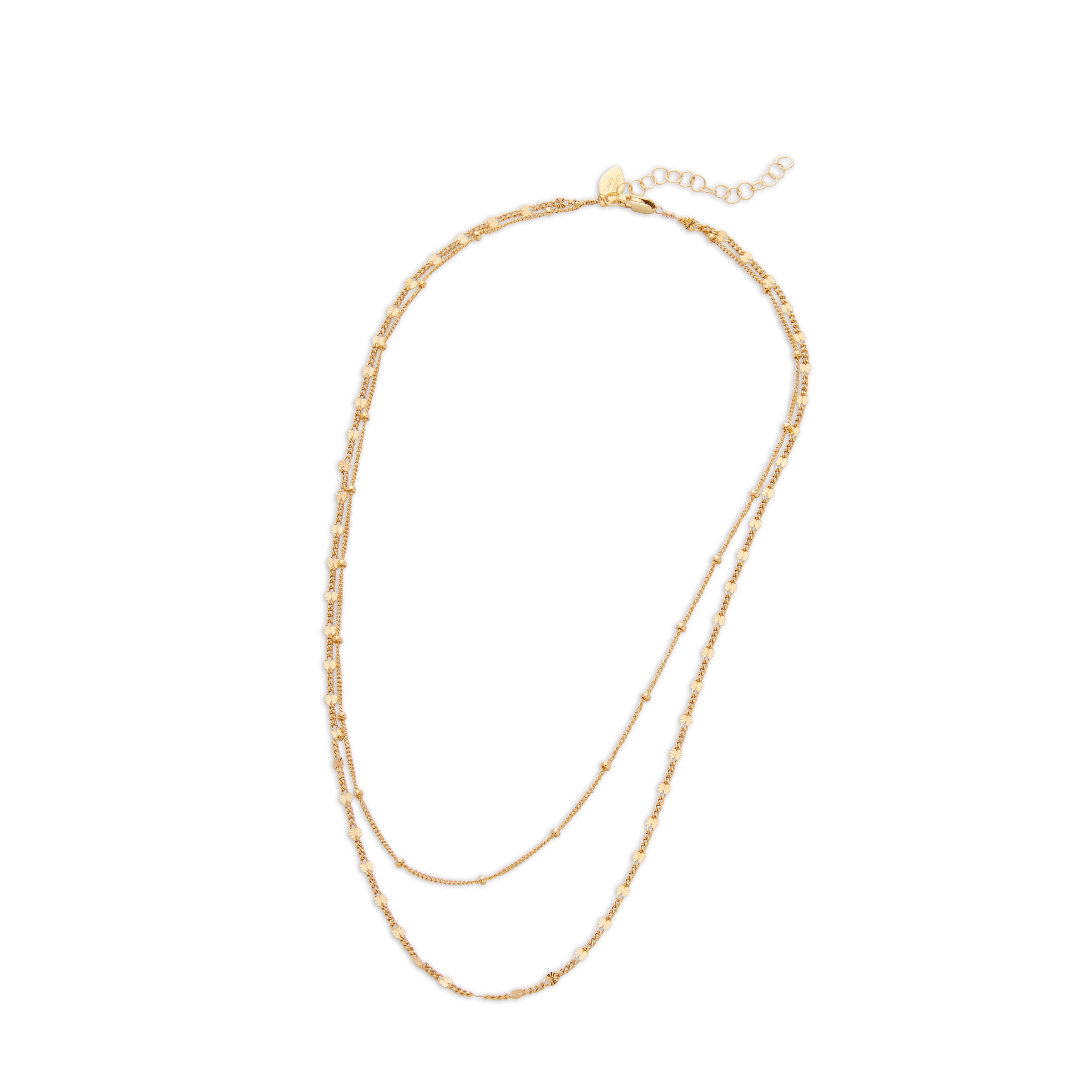 The necklace features two 14k gold-filled chains: