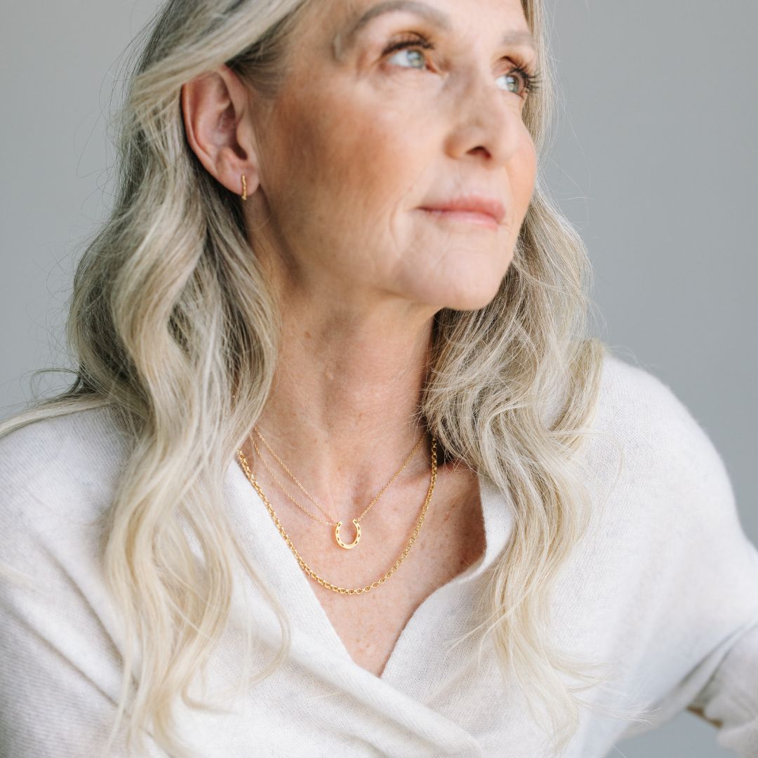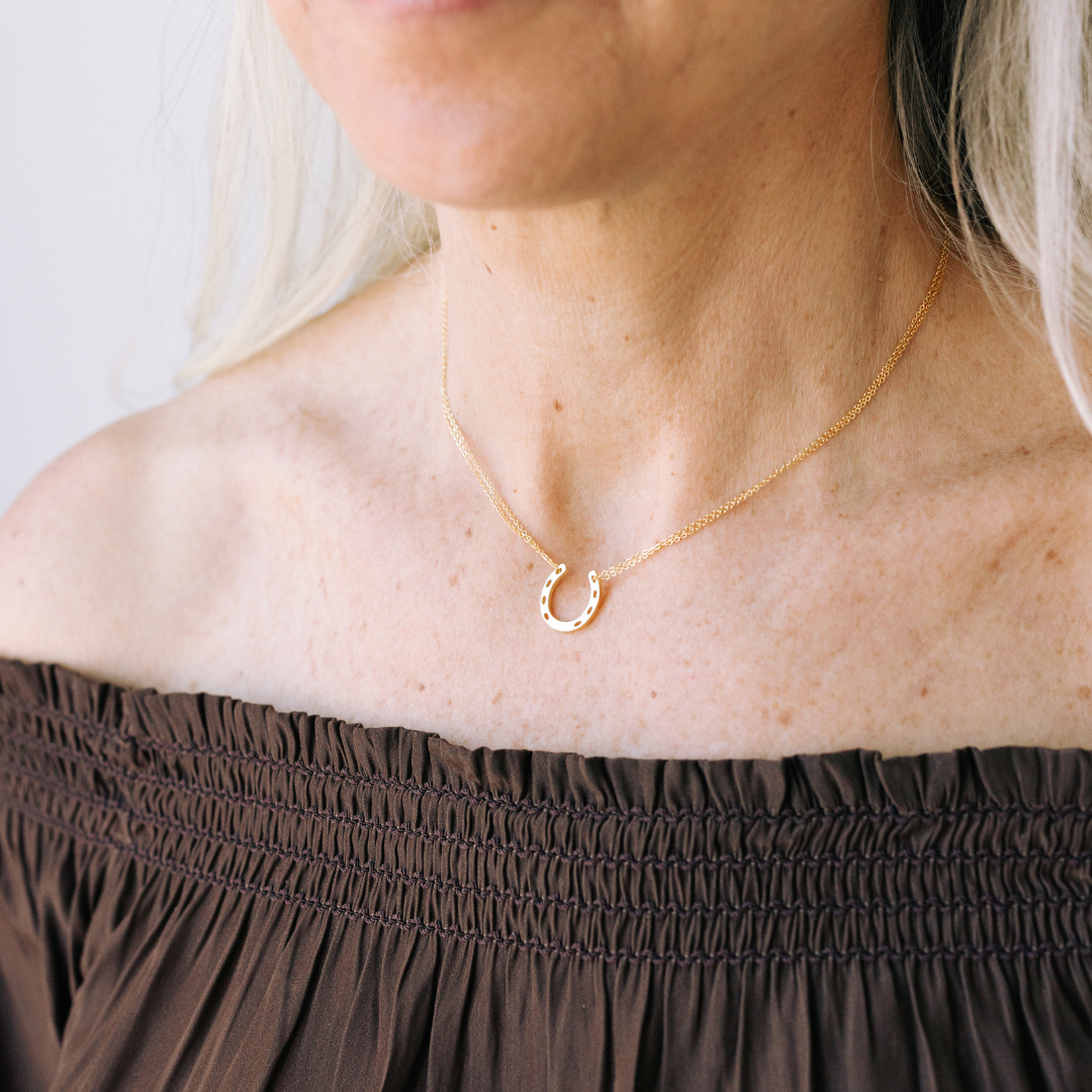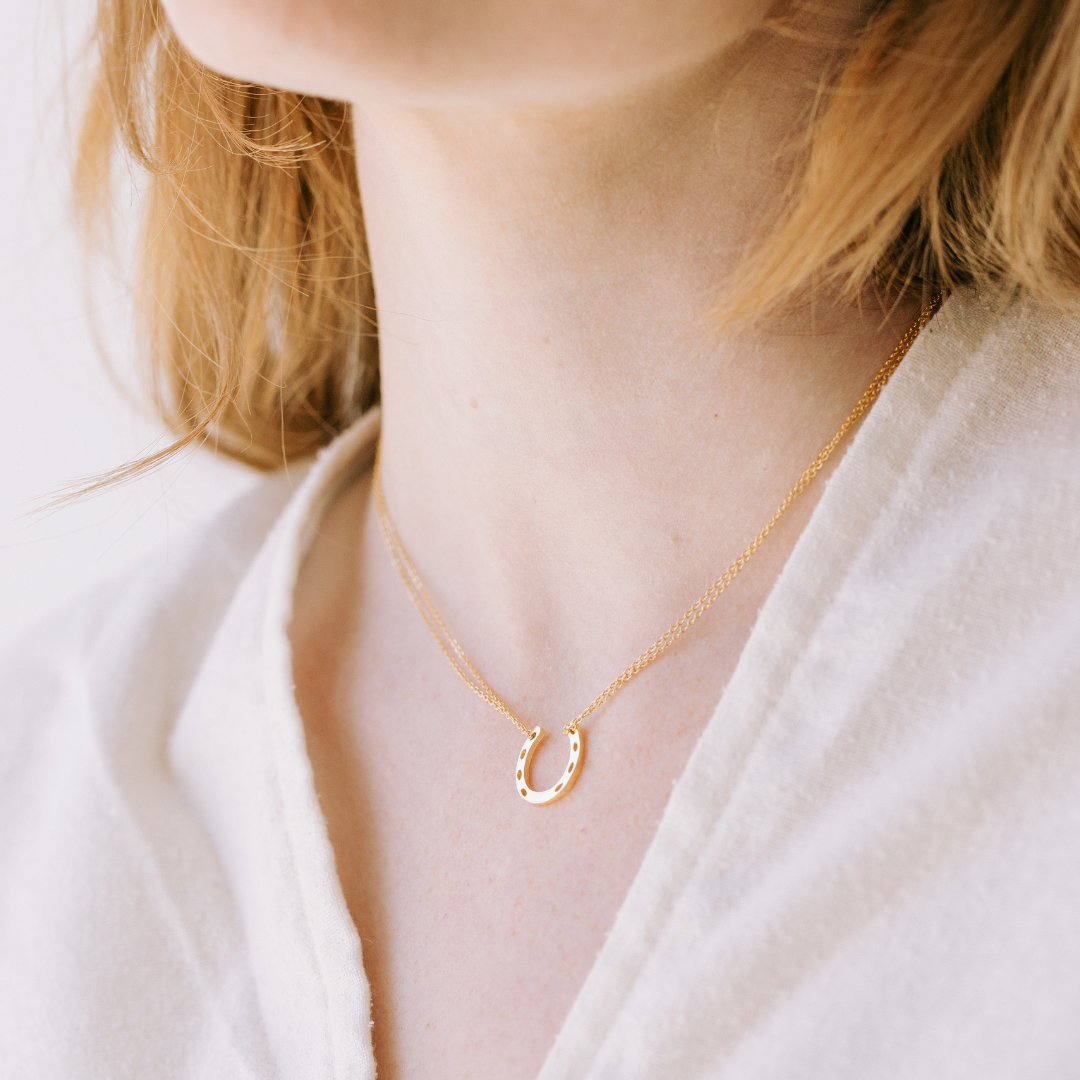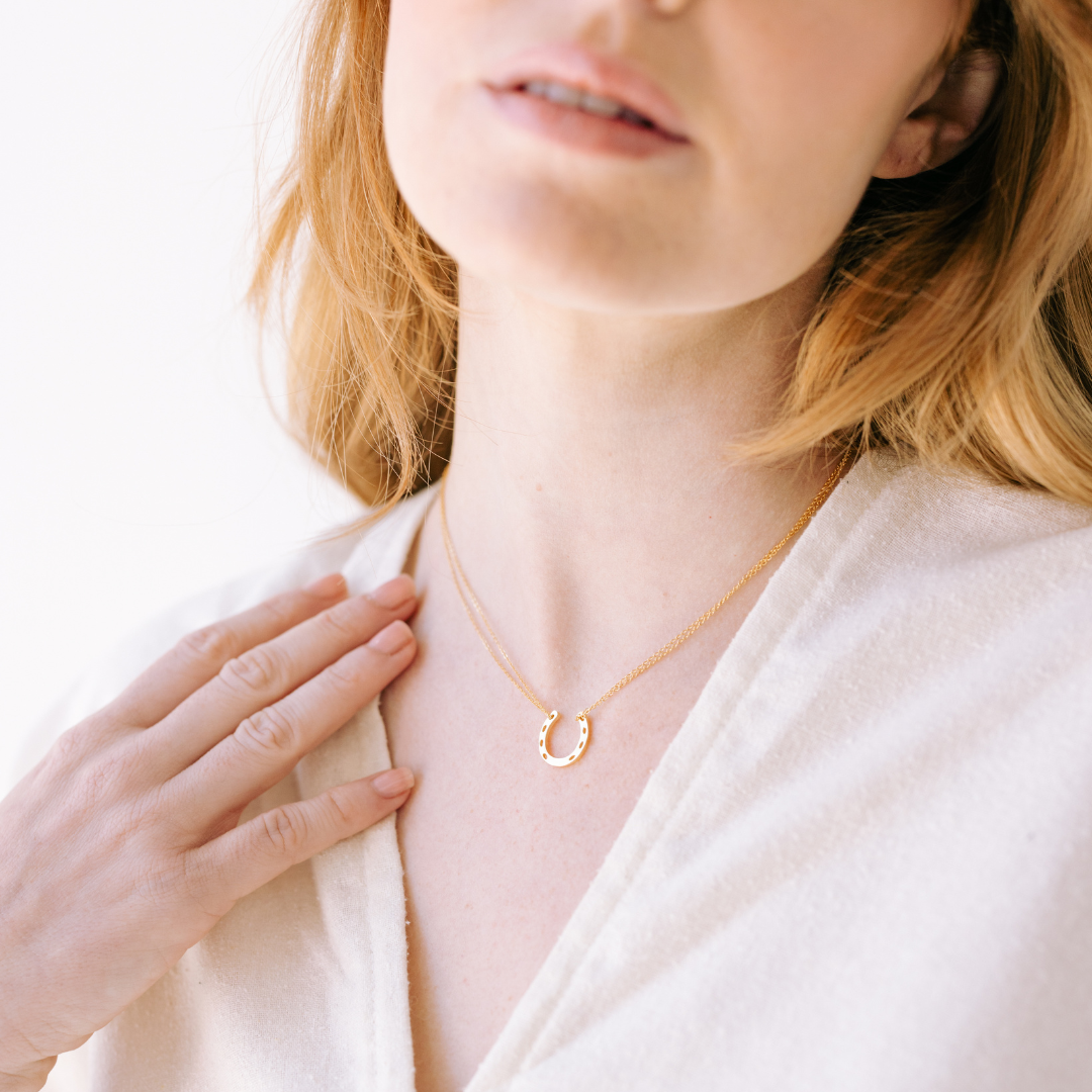 Size of horseshoe pendant is approximately 1/2 inch long and wide