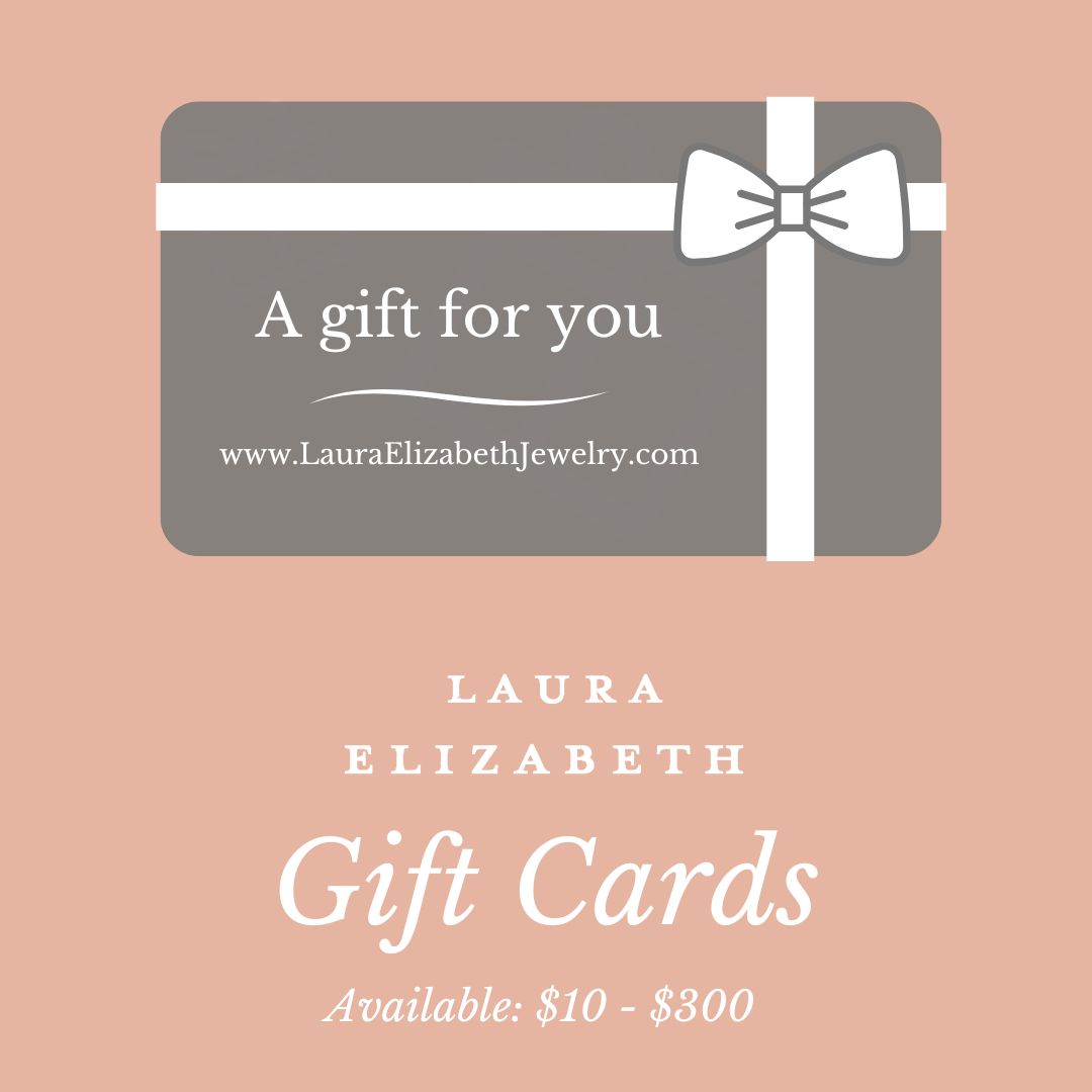 Laura Elizabeth offers gift cards to use on LauraElizabethJewelry.com The gift cards never expire. They come in increments of $10, $25, $50, $100, $200, and $300.