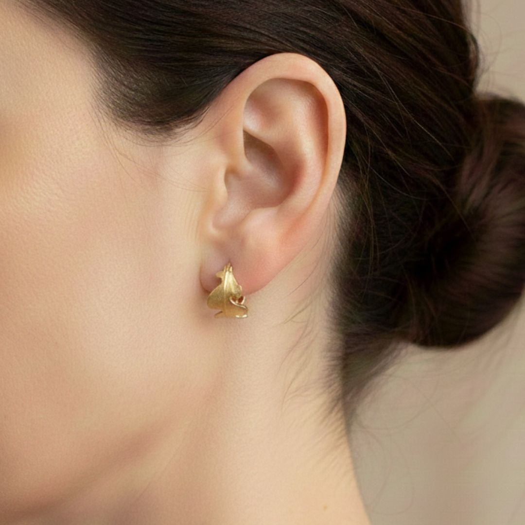 Crafted in 14k gold-filled or sterling silver over recycled brass, these huggies carry the same bold bark-inspired texture as the original, but in a softer, daintier silhouette. Lightweight, comfortable, and stackable, they’re the kind of piece that quietly steals the show.