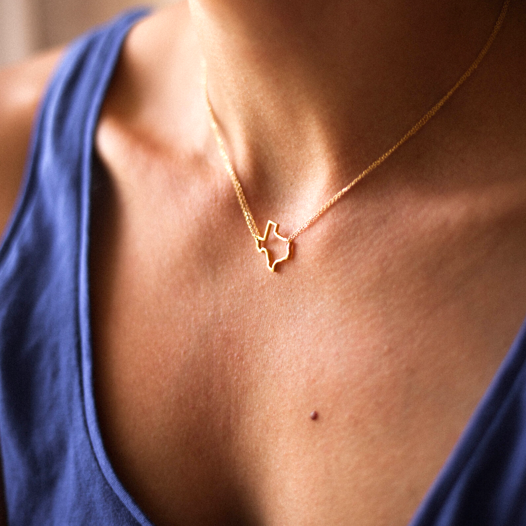 Texas is my home state. Let's give it some pride! Texas is a beautiful place. I have spent time road tripping through much of the state, and I've seen diversity in the people, cultures, and perspectives. Texas is it's own mini state. Not so mini, though! While the state of Texas is massive, I've made my interpretation and necklace delicate and wearable. Wear her with pride and bless your heart!